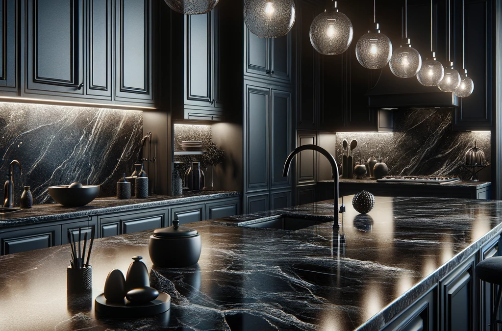 This material is a very popular choice for kitchen countertops, and this is because it is durable, resistant to heat, and has a beautiful appearance. It has a sleek and sophisticated appearance that looks good in both modern and traditional kitchen designs. Black granite countertops look very good with light colored kitchen cabinets as well as stainless steel appliances which improves the overall aesthetic of the kitchen design. To top it all off, its stain and scratch-resistant properties make it the best choice for food preparation areas.